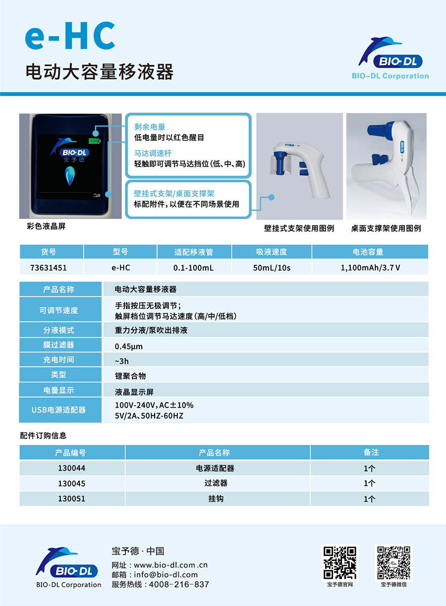 BIO-DL e-HC電動(dòng)大容量移液器,大容量移液器,電動(dòng)移液器,具備出色的人體工程學(xué)設(shè)計(jì),靈敏的速度控制功能可確保對(duì)多種液體進(jìn)行輕松順暢移液與分液。